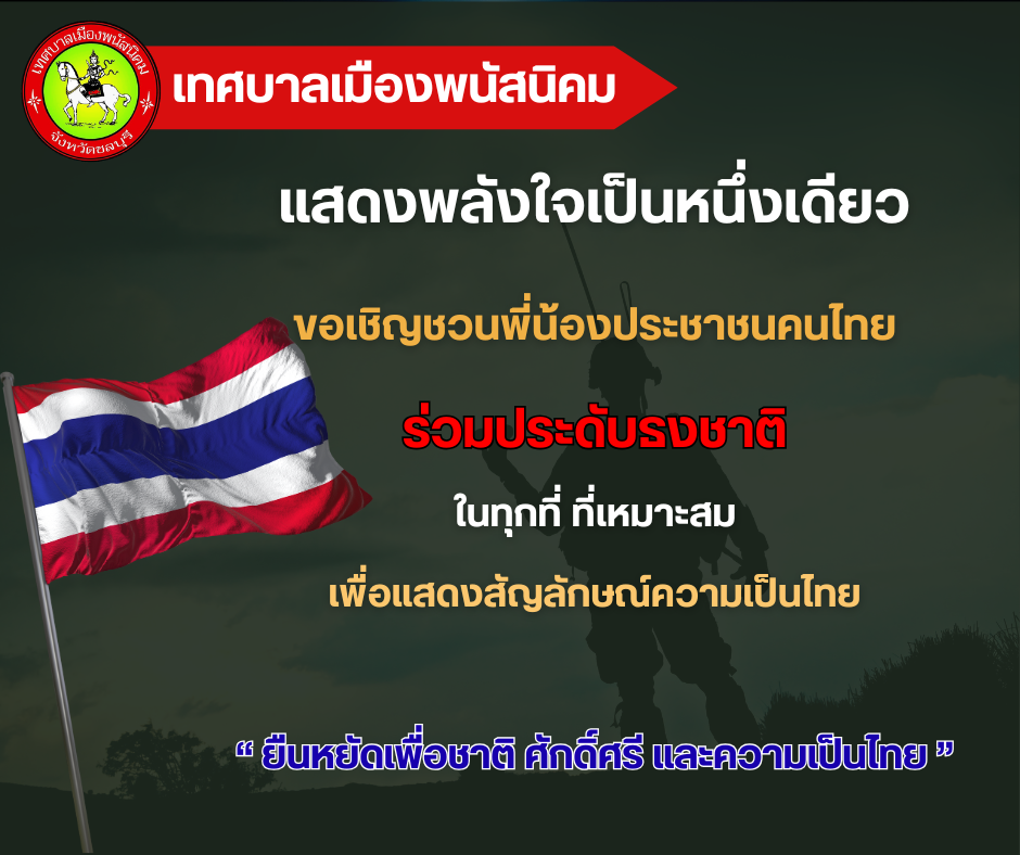 ขอเชิญชวนพี่น้องประชาชนคนไทย ร่วมประดับธงชาติ พื่อแสดงสัญลักษณ์แห่งความเป็นไทย