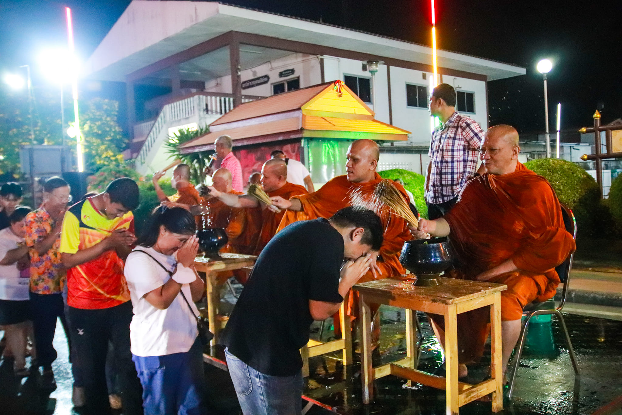 วันที่ 31 ธันวาคม 2566 เวลา 23.59 น. เป็นต้นไป นายวิจัย อัมราลิขิต นายกเทศมนตรีเมืองพนัสนิคม ร่วมด้วยคณะผู้บริหาร เจ้าหน้าที่เทศบาล และประชาชนชาวอำเภอพนัสนิคม ร่วม ประพรมน้ำพระพุทธมนต์ เพื่อเสริมความเป็นสิริมงคล ต้อนรับปี 2567 ณ บริเวณหน้าหอพระพนัสบดี เทศบาลเมืองพนัสนิคม