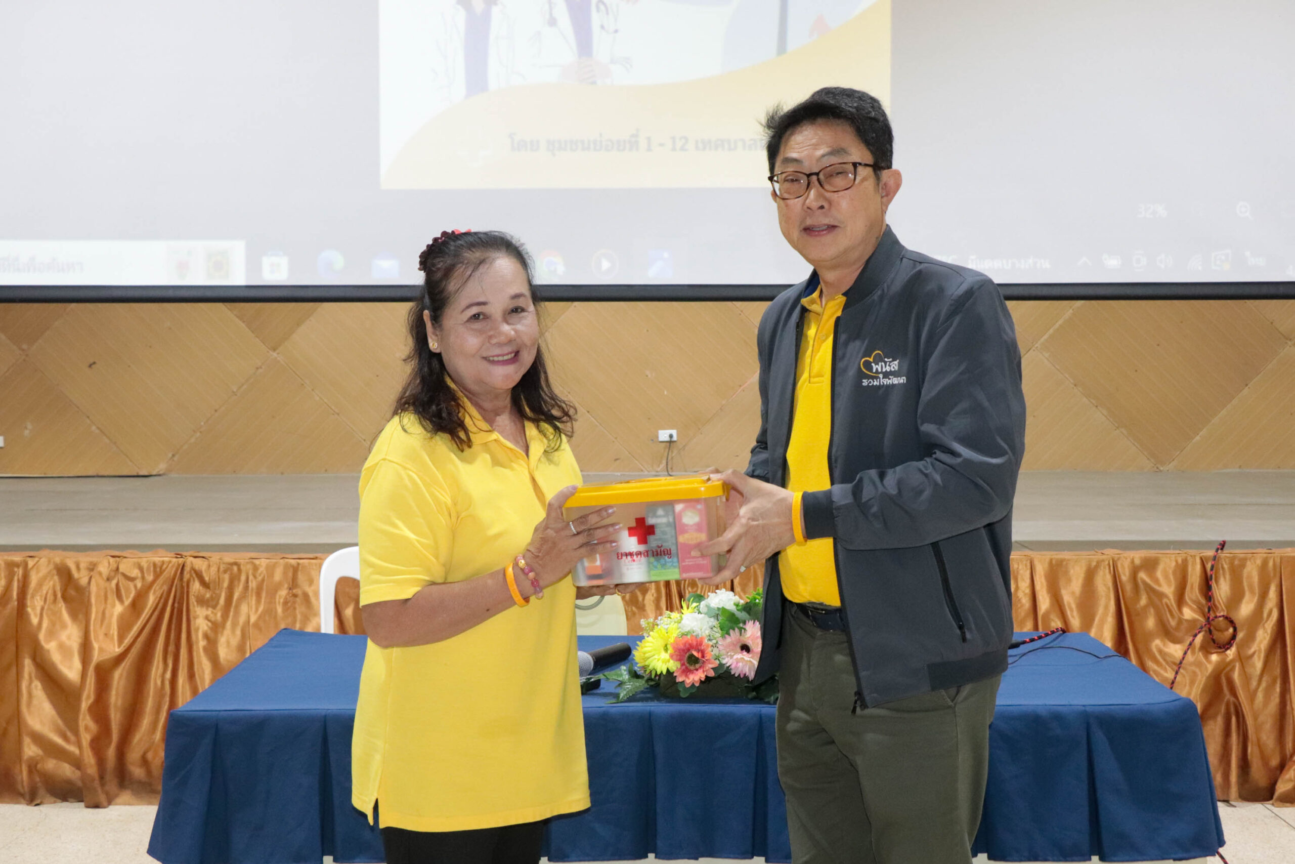 วันที่ 4 กันยายน 2567 เวลา 09.00 น. นายปรีชา กาญจนบัตร รองนายกเทศมนตรี เป็นประธาน พิธีเปิดโครงการอบรม แกนนำหมอหมู่บ้าน ช่วยชีวิตขั้นพื้นฐาน ในพระราชประสงค์ พร้อมทั้งมอบชุดยาสามัญประจำบ้าน ให้แก่ ผู้อำนวยการโรงเรียนเทศบาล 2 (วัดกลางทุมมาวาส) และตัวแทนแกนนำหมอหมู่บ้าน จากชุมชนย่อยที่ 1-12 ณ อาคารหอประชุมเฉลิมพระเกียรติเทศบาลเมืองพนัสนิคม