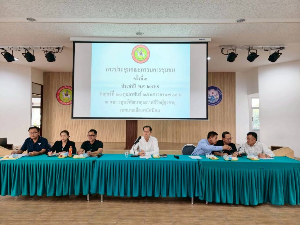 วันศุกร์ที่ 20 กุมภาพันธ์ 2569 เวลา 17.00 น. เทศบาลเมืองพนัสนิคม นายธรรมรัตน์ เพชราวุฒิไกร นายกเทศมนตรีเมืองพนัสนิคม เป็นประธานในการประชุมคณะกรรมการชุมชน ครั้งที่ 3 ปรจะจำปี พ.ศ.2569