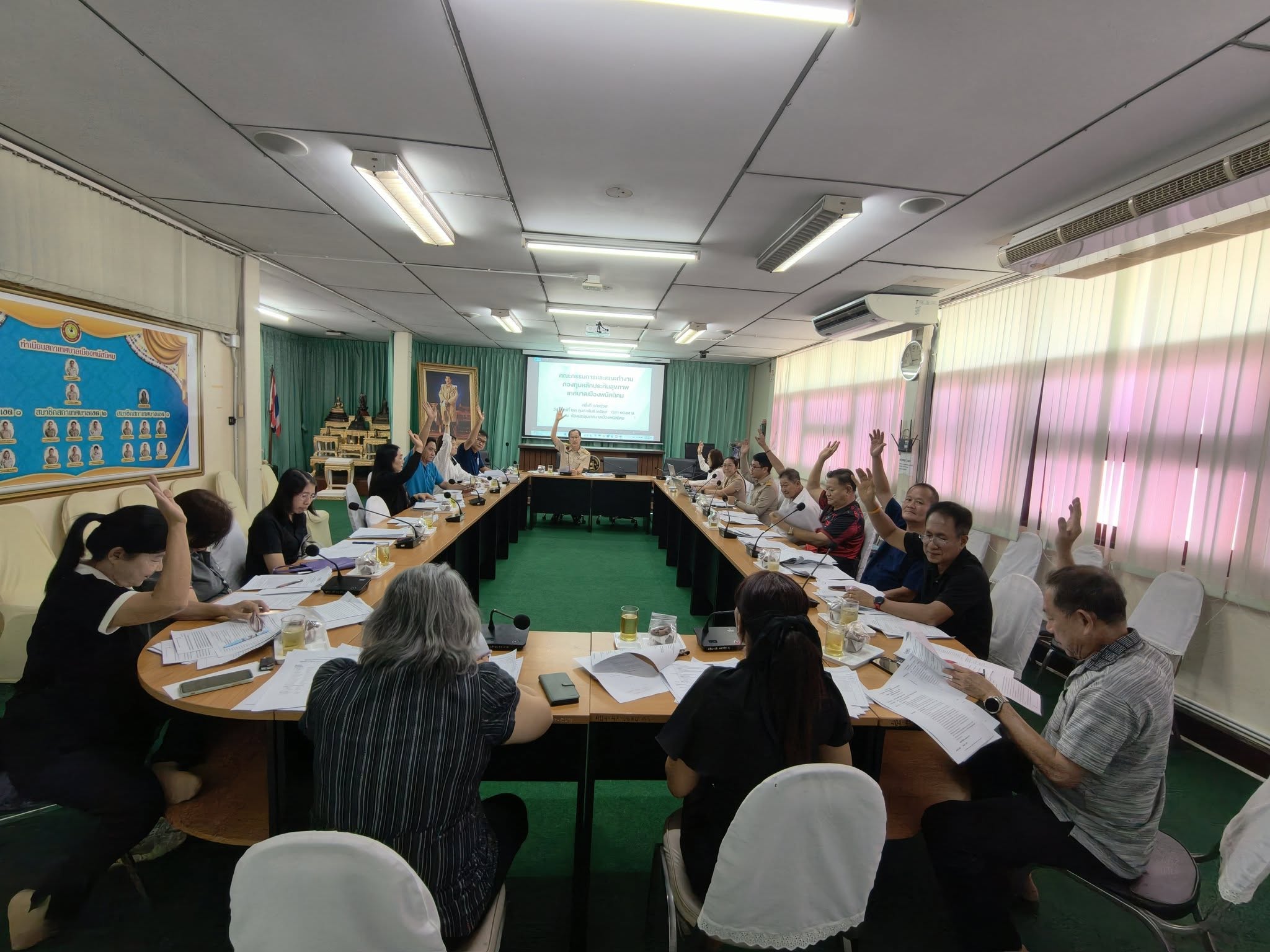 วันจันทร์ที่ 23 กุมภาพันธ์ 2569 เวลา 14.00 น. นายธรรมรัตน์ เพชราวุฒิไกร นายกเทศมนตรีเมืองพนัสนิคม เป็นประธาน ในการประชุมคณะกรรมการและคณะทำงานกองทุนหลักประกันสุขภาพเทศบาลเมืองพนัสนิคม ครั้งที่ 1/2569 เพื่อพิจารณาแผนงานโครงการและงบประมาณประจำปี พ.ศ.2569 ณ ห้องประชุมเทศบาลเมืองพนัสนิคม โดยมีผู้เข้าร่วมประชุมประกอบด้วย คณะกรรมการและคณะทำงานกองทุนหลักประกันสุขภาพเทศบาลเมืองพนัสนิคม