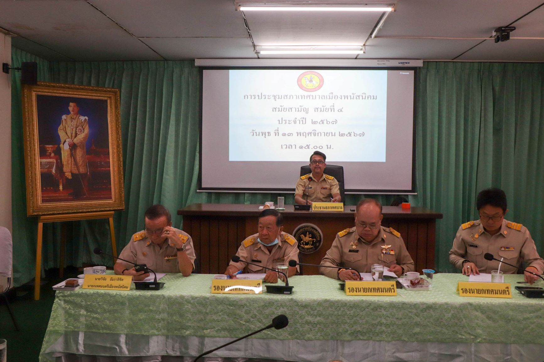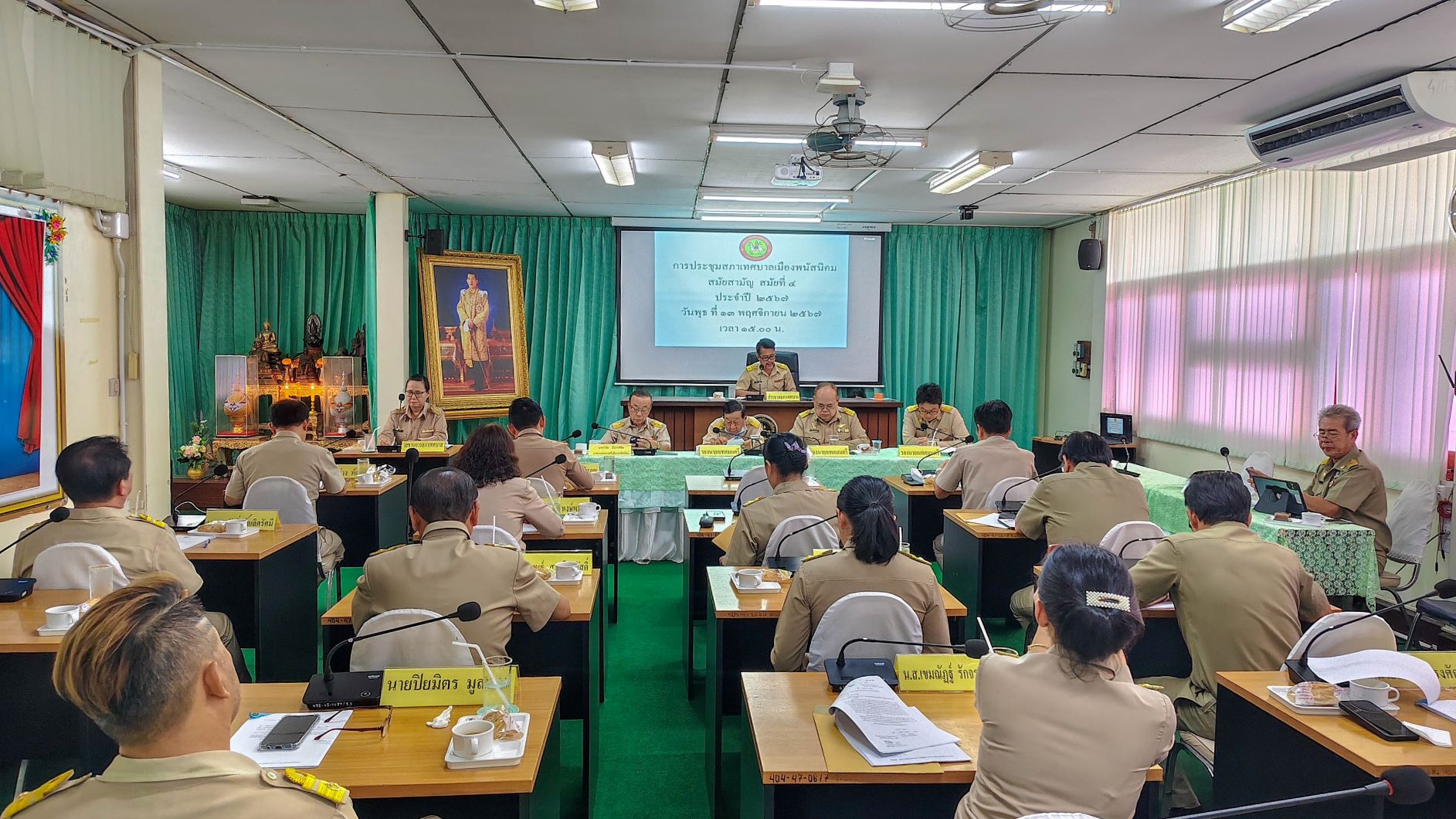 การประชุมสภาเทศบาลเมืองพนัสนิคม วันที่ 13 พฤศจิกายน 2567 เวลา 15.00 น. นายสิทธิศักดิ์ มูลผลา รองประธานสภาเทศบาล ปฏิบัติหน้าที่แทนประธานสภาฯ เปิดการประชุมสภาเทศบาลเมืองพนัสนิคม สมัยสามัญ สมัยที่ 4 ประจำปี พ.ศ. 2567 ณ ห้องประชุมเทศบาลเมืองพนัสนิคม