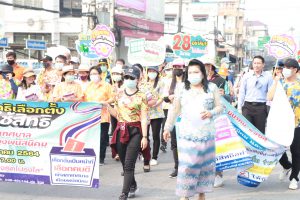 วันพฤหัสบดีที่ 18 มีนาคม 2564 เวลา 09.00 น. นางนันท์ธนาภา เวชเดช ปลัดเทศบาล ปฏิบัติหน้าที่ นายกเทศมนตรีเมืองพนัสนิคม พร้อมด้วย คณะผู้บริหาร หัวหน้าส่วนราชการ และเจ้าหน้าที่ ร่วมกิจกรรมการเดินรณรงค์เชิญชวนให้ประชาชนออกไปใช้สิทธิเลือกตั้ง “สมาชิกสภาเทศบาลและนายกเทศมนตรีเมืองพนัสนิคม” ภายในเขตเทศบาลเมืองพนัสนิคม