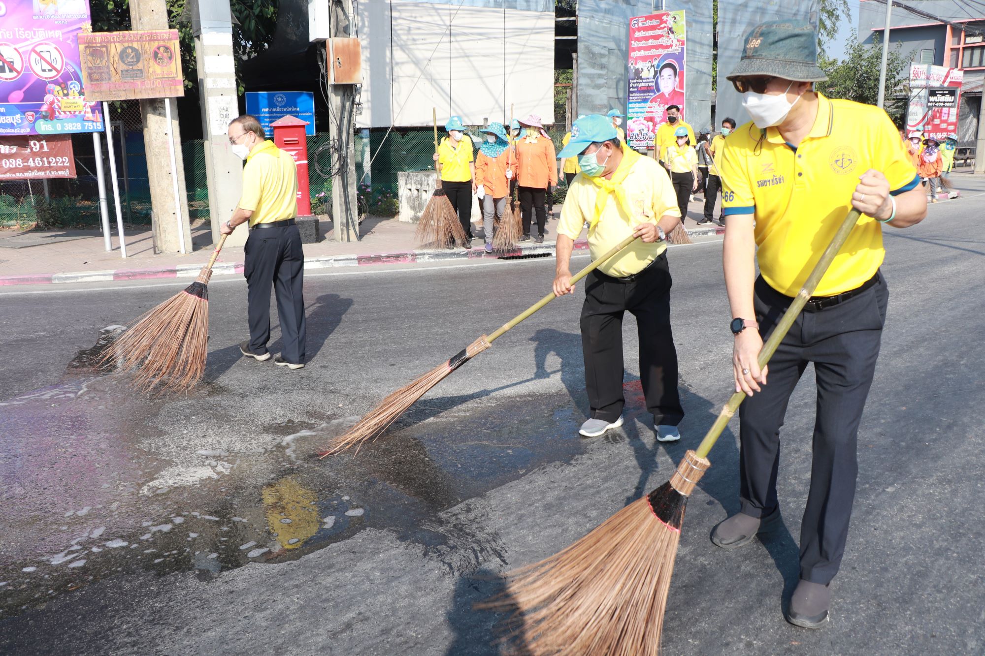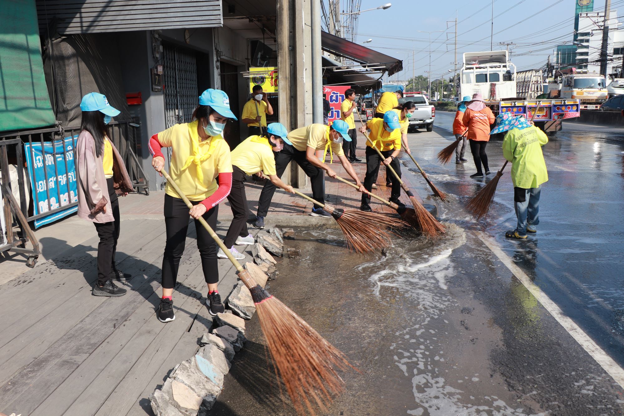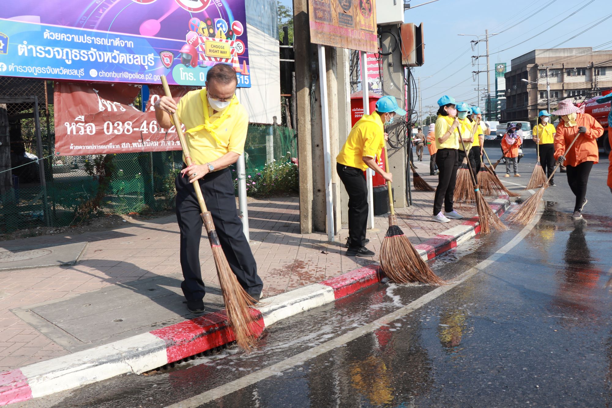 สภ.พนัสนิคม ได้ร่วมทำกิจกรรมจิตอาสา ทำความสะอาดล้างถนนศุขประยูร