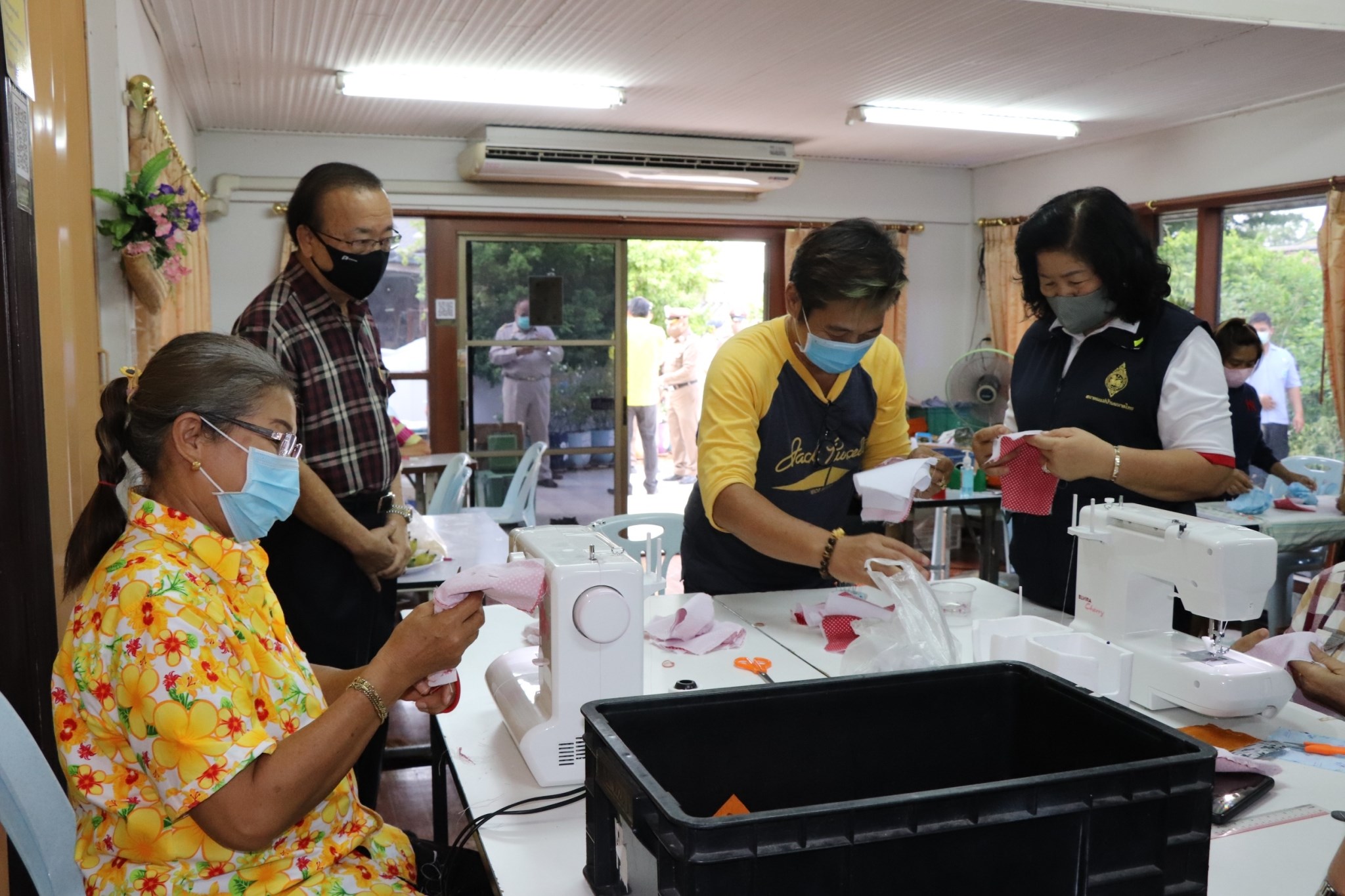 คณะเหล่ากาชาดจังหวัดชลบุรี เข้าเยี่ยมชมการจัดทำหน้ากากผ้า