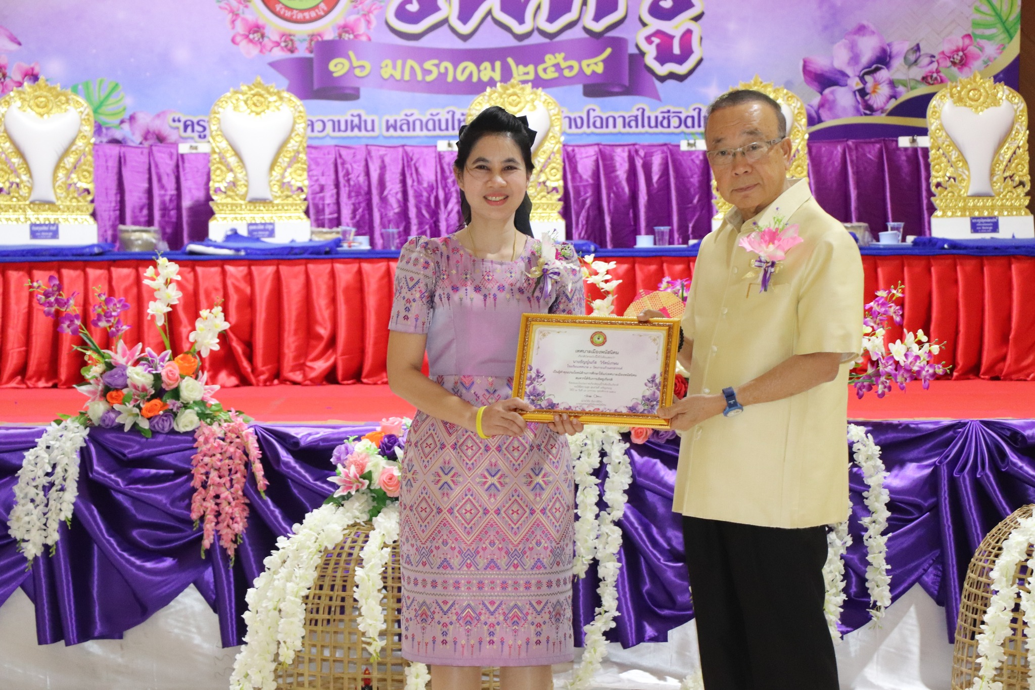 วันที่ 16 มกราคม 2568 เวลา 09.00 น. นายวิจัย อัมราลิขิต นายกเทศมนตรีเมืองพนัสนิคม เป็นประธานในพิธี การจัดงานวันครู ประจำปี 2568 พร้อมทั้ง มอบเกียรติบัตรให้ครูผู้ทำคุณประโยชน์แก่เทศบาลเมืองพนัสนิคม ณ อาคารสวนสาธารณะเฉลิมพระเกียรติเทศบาลเมืองพนัสนิคม โดยมีผู้ร่วมกิจกรรมประกอบด้วย คณะผู้บริหาร สมาชิกสภาเทศบาล หัวหน้าส่วนราชการ เจ้าหน้าที่เทศบาล คณะครูโรงเรียนเทศบาล 1 – 4