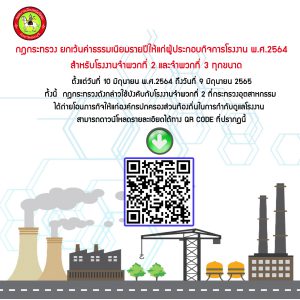 ประชาสัมพันธ์การยกเว้นค่าธรรมเนียมรายปีให้แก่ผู้ประกอบกิจการโรงงาน พ.ศ.2564