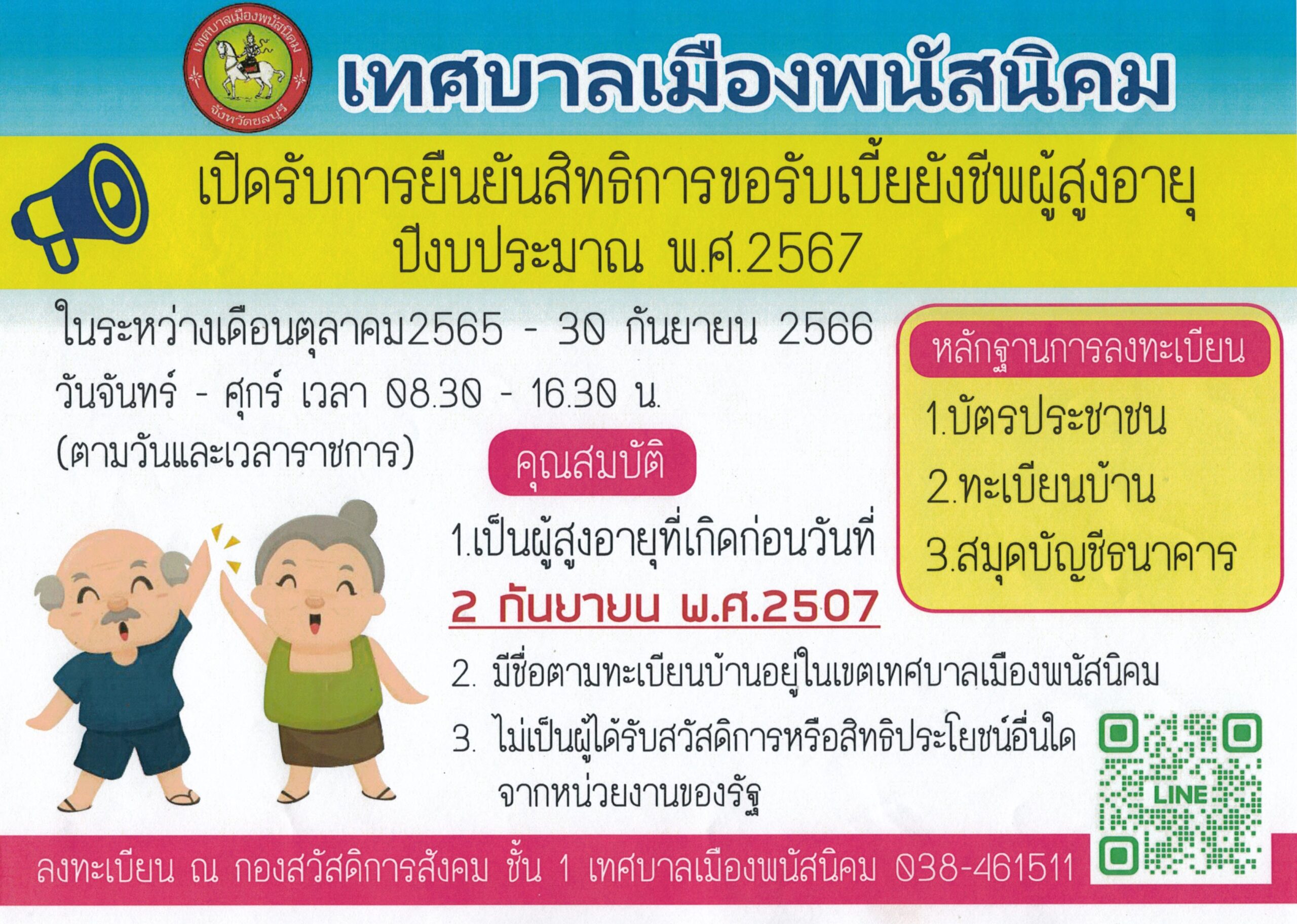 ประชาสัมพันธ์การลงทะเบียนเบี้ยยังชีพผู้สูงอายุ เพื่อขอรับเงินเบี้ยยังชีพผู้สูงอายุ ปีงบประมาณ พ.ศ.2567