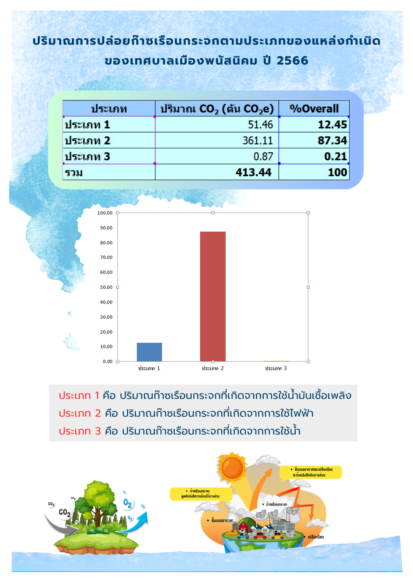 ปริมาณการปล่อยก๊าซเรือนกระจก ตามประเภทของแหล่งกำเหนิดของเทศบาลเมืองพนัสนิคม ปี 2566