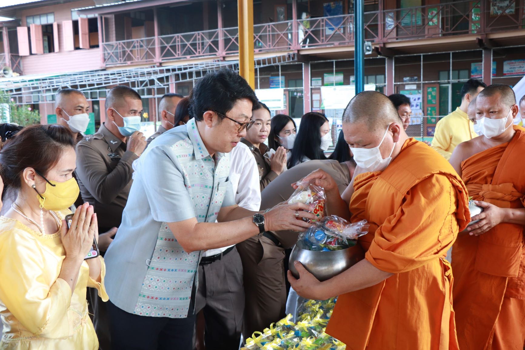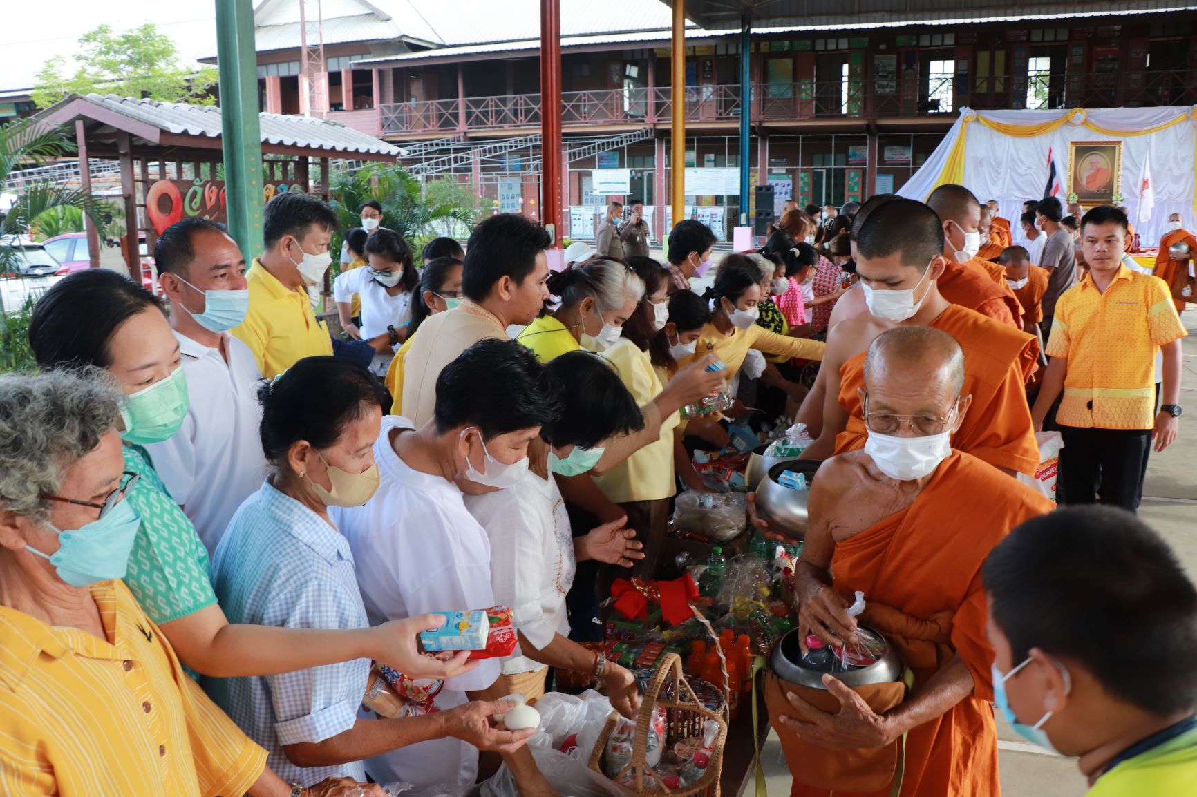 วันจันทร์ที่ 26 มิถุนายน 2566 เวลา 07.30 น. นายปรีชา กาญจนบัตร รองนายกเทศมนตรีเมืองพนัสนิคม พร้อมด้วย รองปลัดเทศบาล และหัวหน้าส่วนราชการ เข้าร่วมพิธีทำบุญตักบาตรพระสงฆ์ จำนวน 69 รูป ถวายเป็นพระกุศล เนื่องในโอกาสการจัดงานฉลองพระชนมายุครบ 8 รอบ ของสมเด็จพระอริยวงศาคตญาณ สมเด็จพระสังฆราช สกลมหาสังฆปริณายก 26 มิถุนายน 2566 ณ อาคารอเนกประสงค์วัดหลวงพรหมาวาส ตำบลวัดหลวง อำเภอพนัสนิคม จังหวัดชลบุรี