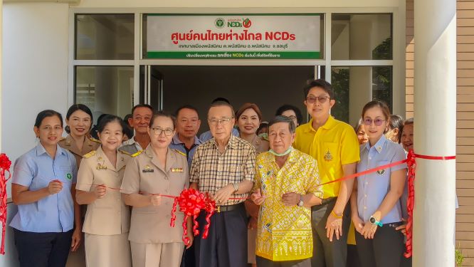 จากนั้นประธานในพิธี และแขกผู้มีเกียรติ ได้ร่วมทำพิธีเปิดศูนย์คนไทยห่างไกลโรคเรื้อรัง ซึ่งจะให้บริการวัดความดัน เจาะน้ำตาลปลายนิ้ว และให้ความรู้เรื่องอาหาร