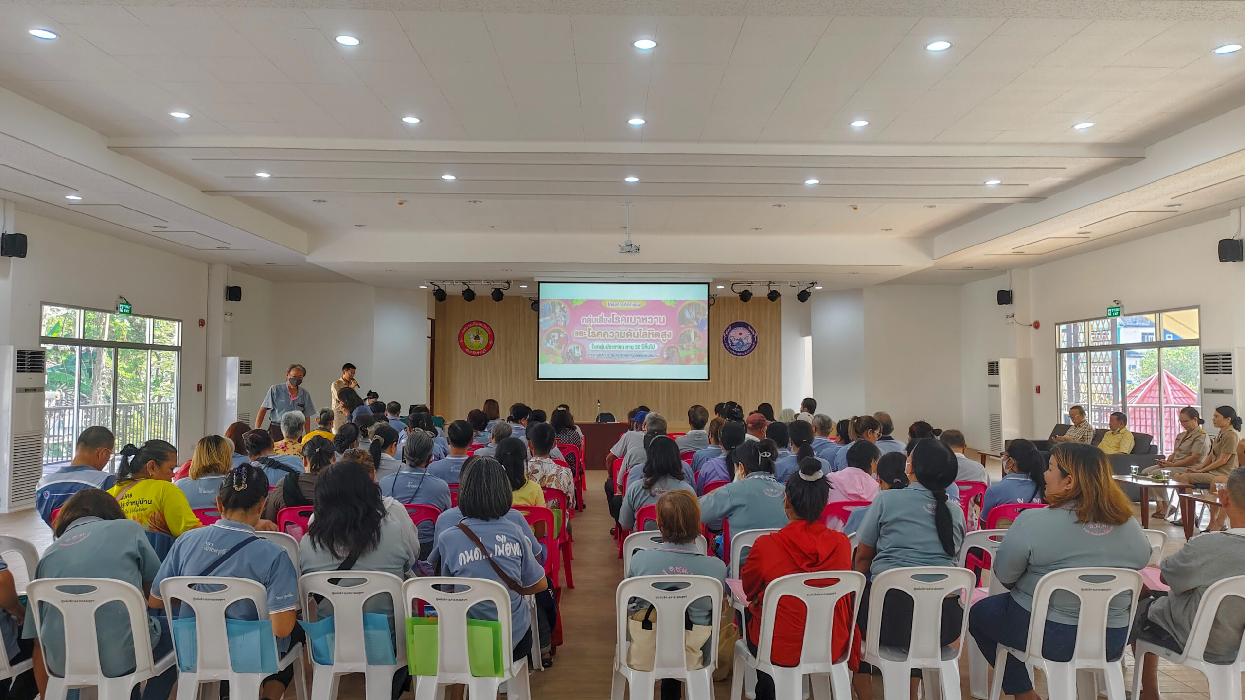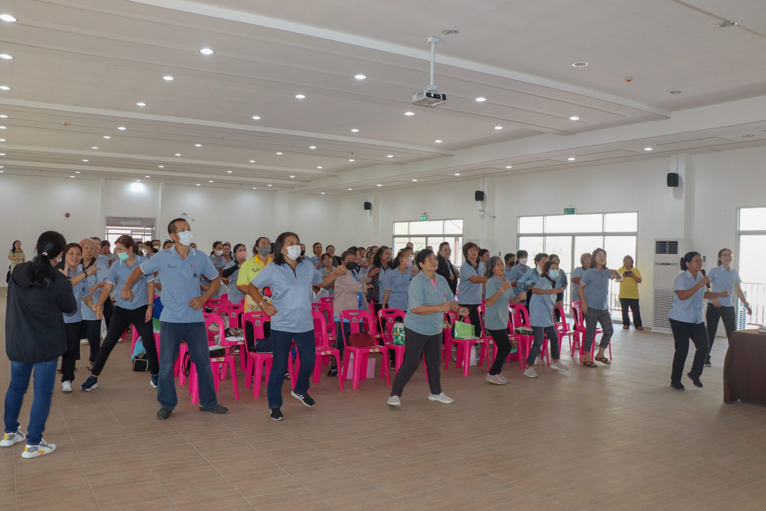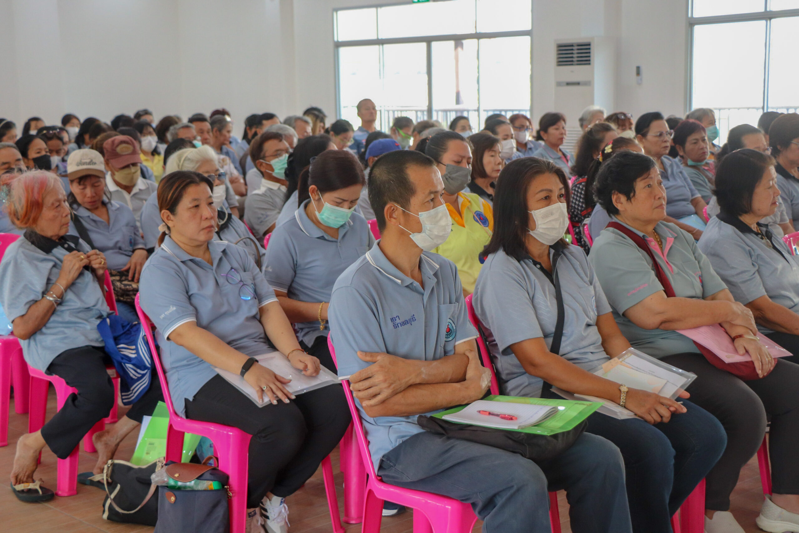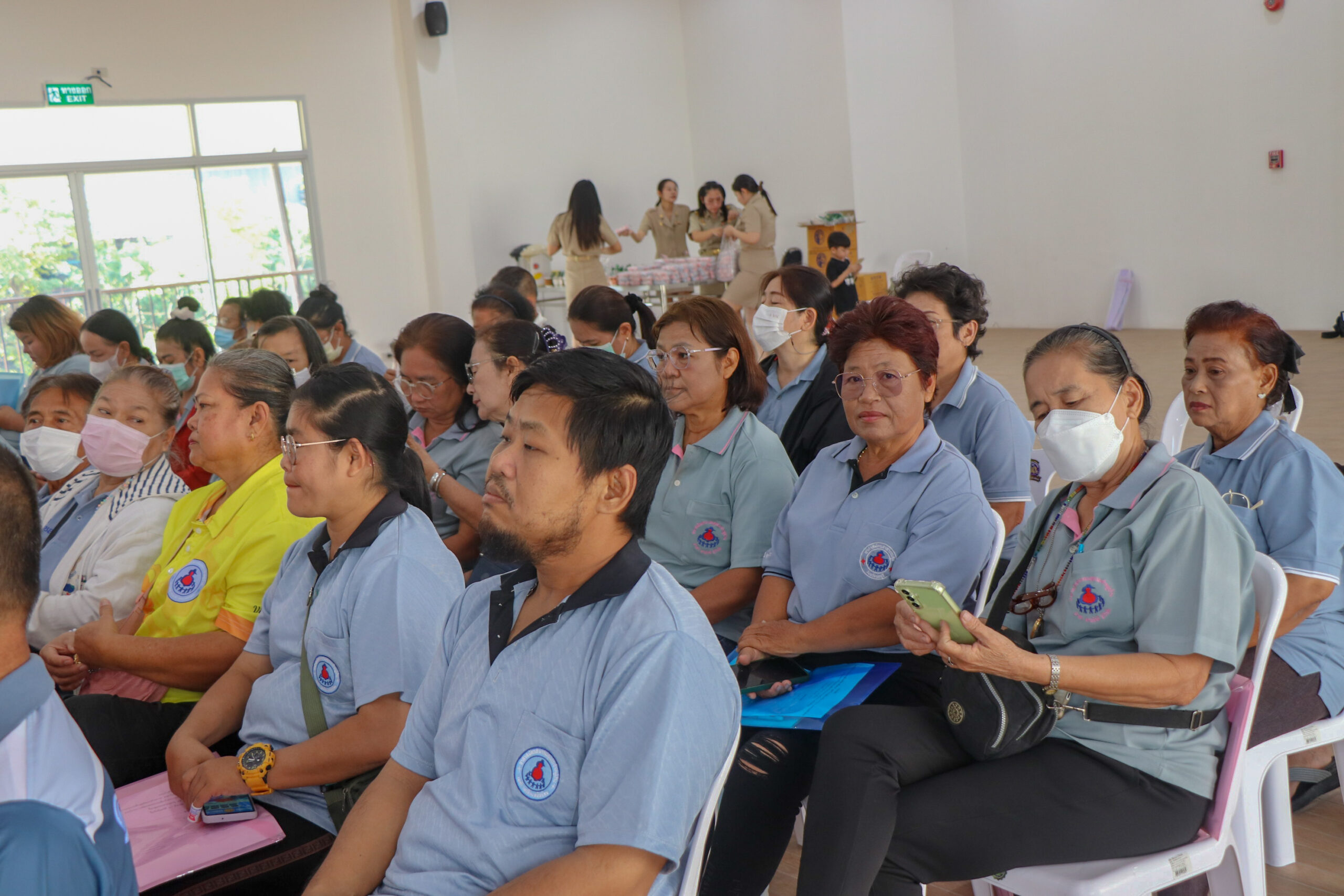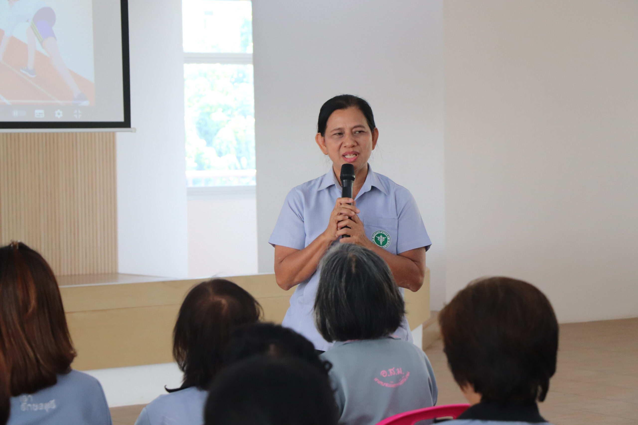 ต่อมาเข้าสู่ช่วงการอบรม โดยวิทยากรจากโรงพยาบาลพนัสนิคม บรรยายให้ความรู้เรื่องโรคเรื้อรัง โรคความดันโลหิตสูง โรคเบาหวาน และการป้องกัน พร้อมทั้งแบ่งกลุ่มฝึกปฏิบัติ การคัดกรองโรคเบาหวานและความดัน
