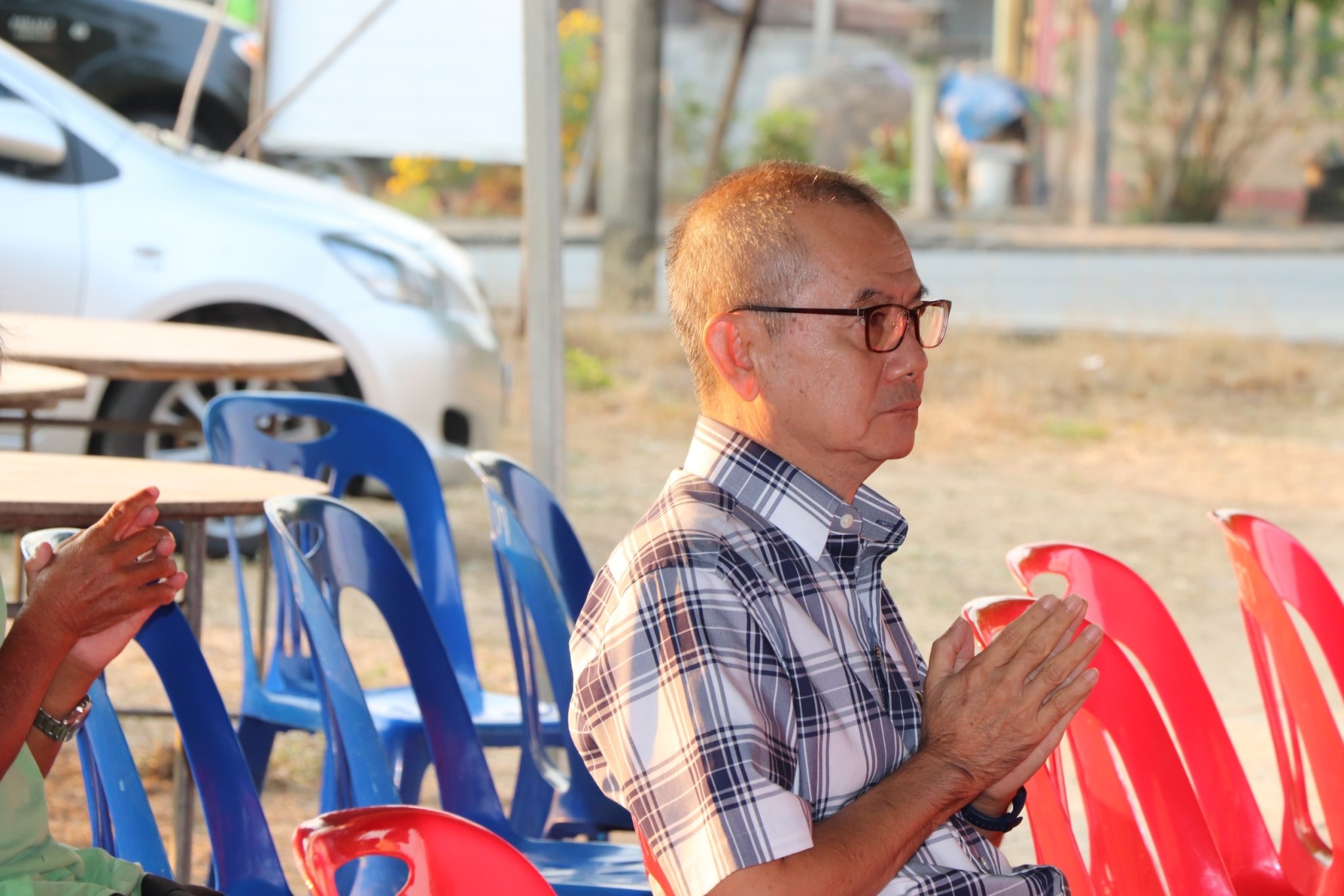 ฟังพระสงฆ์เจริญพระพุทธมนต์เย็น และพิธีทำบุญตักบาตรถวายภัตราหารเช้าแด่พระสงฆ์