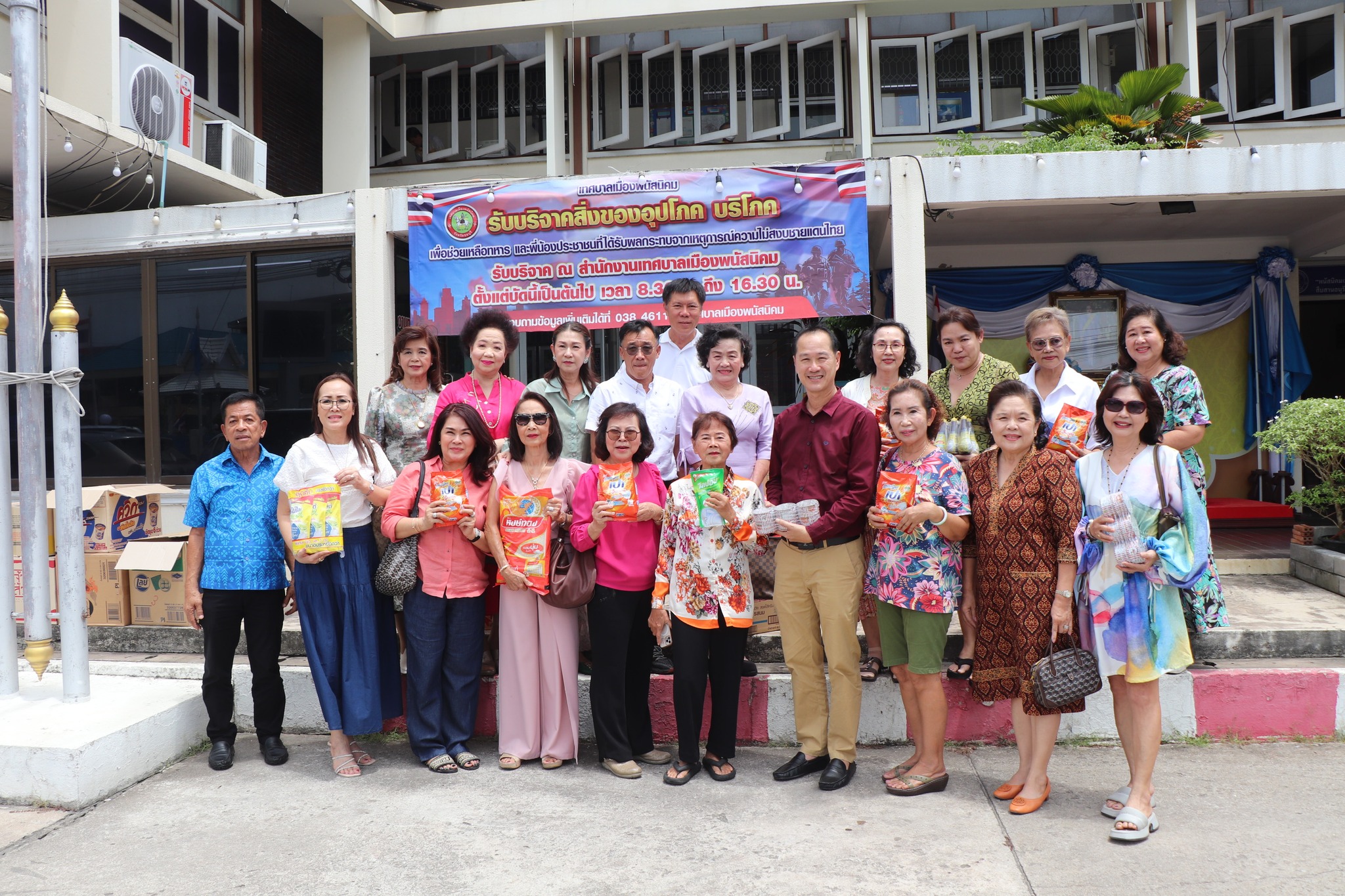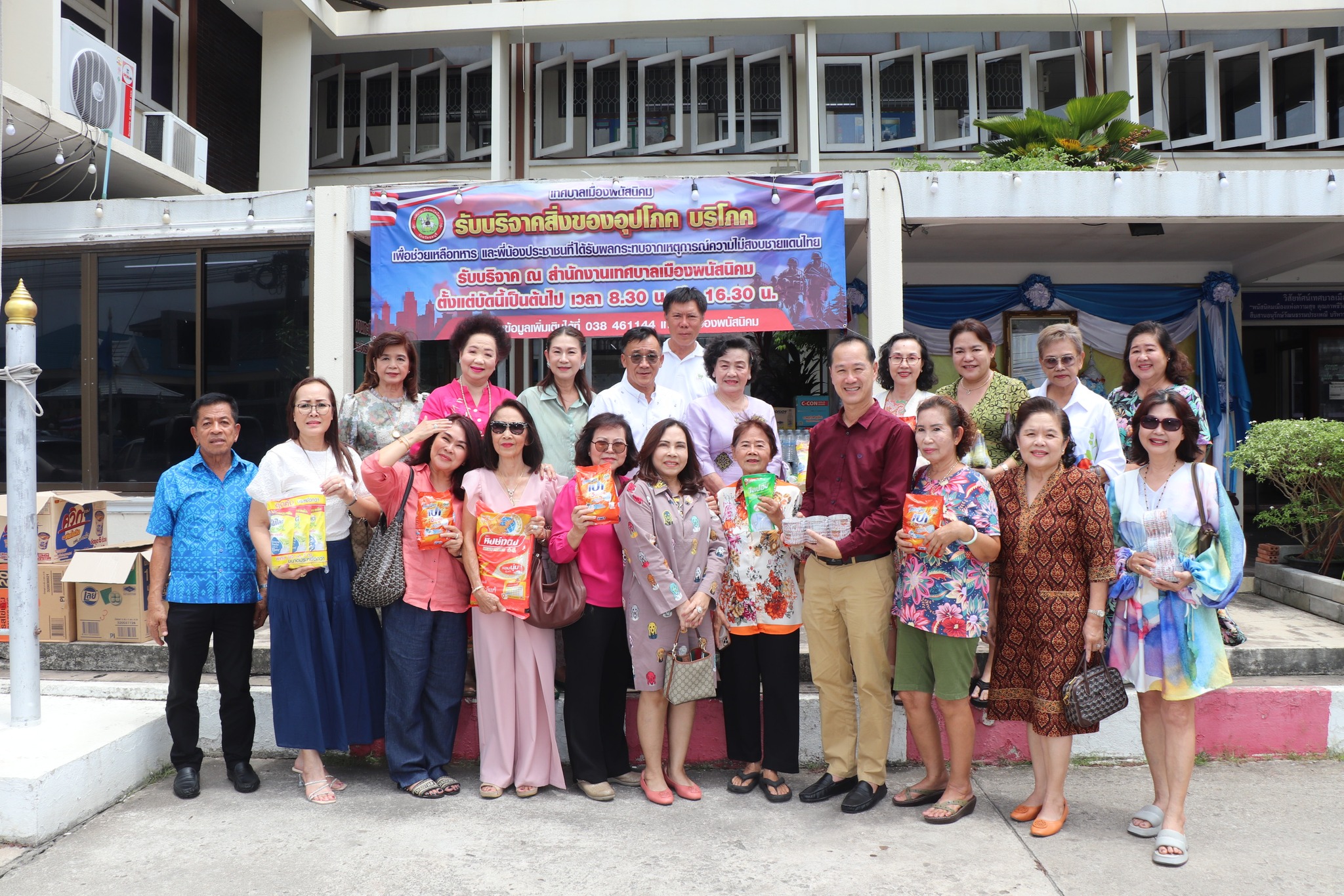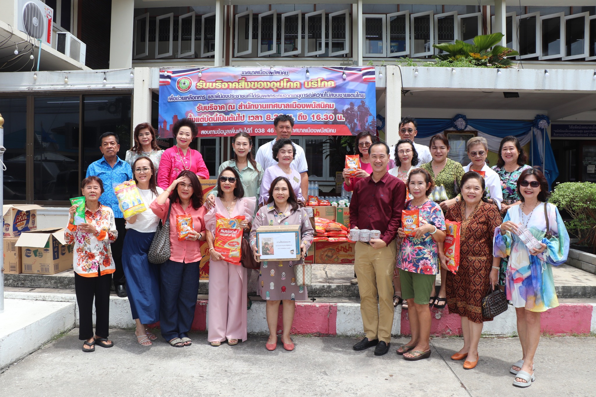 วันที่ 14 สิงหาคม 2568 เทศบาลเมืองพนัสนิคม นำโดย นายธรรมรัตน์ เพชราวุฒิไกร นายกเทศมนตรีเมืองพนัสนิคม นายพิชัย ทรงศักดิ์ศรี รองนายกเทศมนตรีเมืองพนัสนิคม นายณภัทร กิตติโกษา รองนายกเทศมนตรี ร่วมรับมอบสิ่งของอุปโภคบริโภค เพื่อสนับสนุนกำลังพลที่ปฏิบัติหน้าที่ตามแนวชายแดน – กัมพูชา รายนามผู้บริจาค ประกอบด้วย