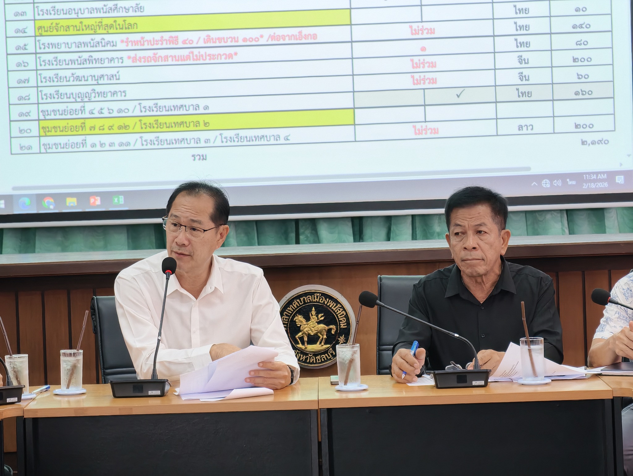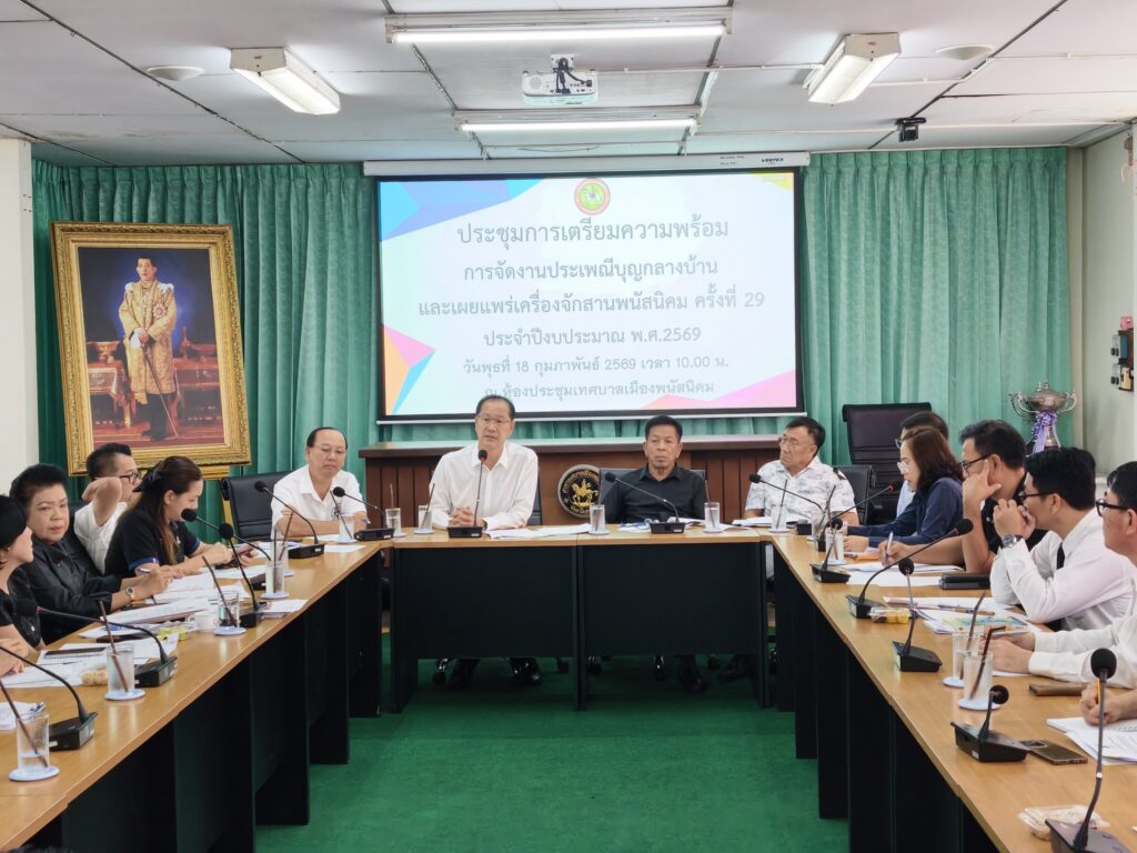 วันที่ 18 กุมภาพันธ์ 2569 เวลา 10.00 น. เทศบาลเมืองพนัสนิคม โดยนายธรรมรัตน์ เพชราวุฒิไกร นายกเทศมนตรีเมืองพนัสนิคม พร้อมด้วย คณะผู้บริหาร หัวหน้าส่วนการงาน ผู้อำนวยการสถานศึกษา และเจ้าหน้าที่เทศบาล ร่วมประชุมการเตรียมความพร้อม การจัดงานประเพณีบุญกลางบ้านและเผยแพร่เครื่องจักสานพนัสนิคม ครั้งที่ 29 ประจำปีงบประมาณ 2569 ณ ห้องประชุมเทศบาลเมืองพนัสนิคม
