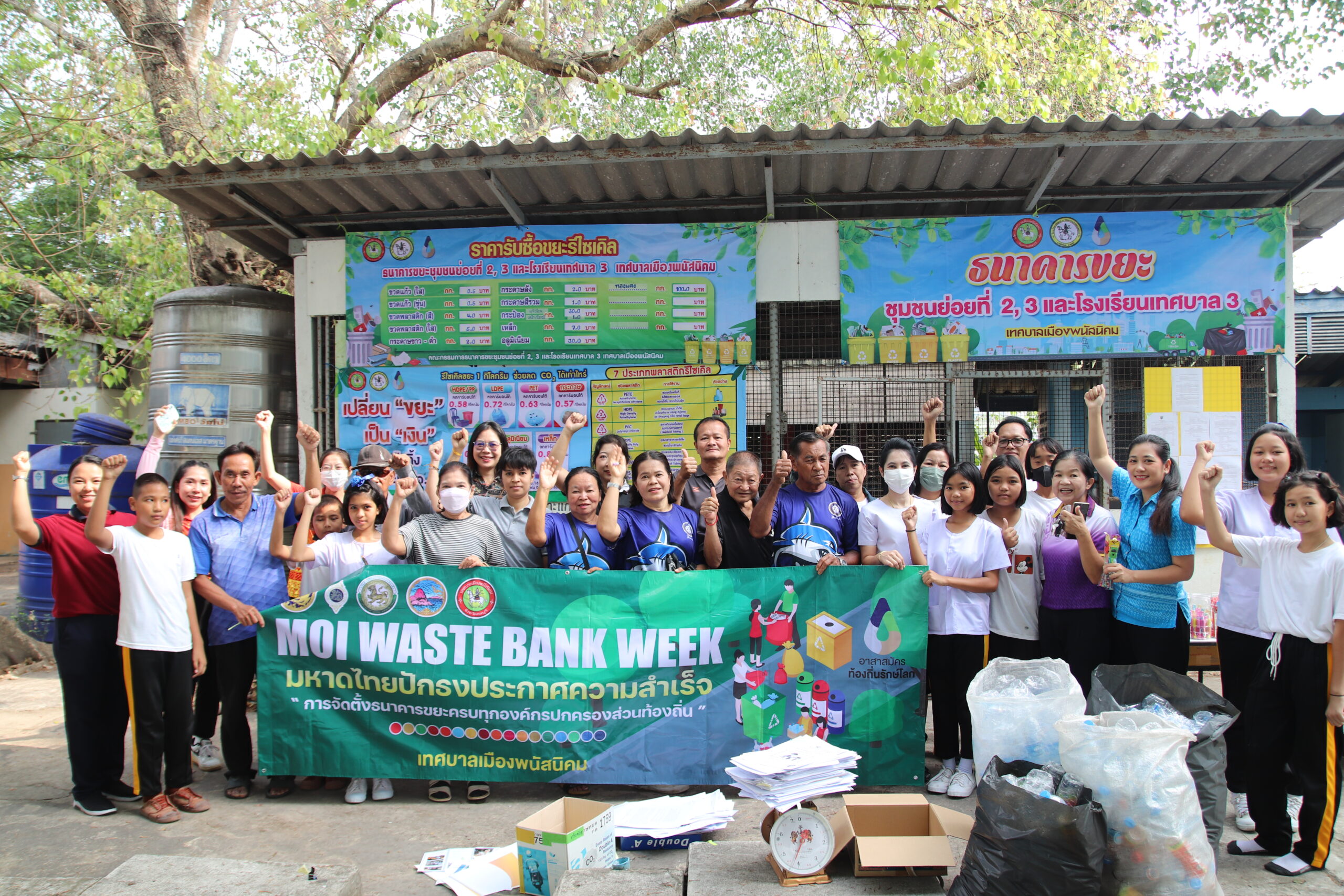 และนายวิทยา บุปผา ประธานคณะกรรมการธนาคารขยะชุมชนย่อยที่ 2,3 และโรงเรียนเทศบาล3 เทศบาลเมืองพนัสนิคม จัดงาน “MOI Waste Bank Week -มหาดไทย ปักธงประกาศความสำเร็จ การจัดตั้งธนาคารขยะครบทุกองค์กรปกครองส่วนท้องถิ่น”