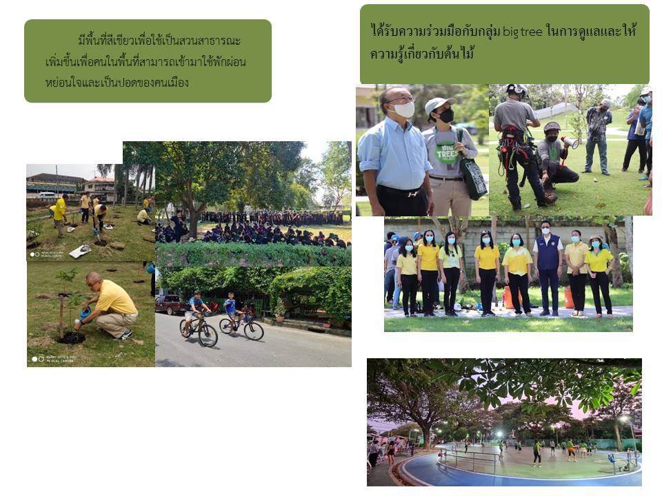 เพิ่มพื้นที่สีเขียวในเมืองและการอบรมการดูแลต้นไม้เพื่อให้ประชาชนได้มีกิจกรรมที่เกี่ยวเนื่องกับพื้นที่สีเขียวภายในชุมชน