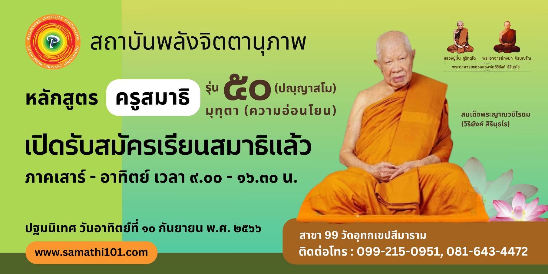 เรียนสมาธิ ฟรี! หลักสูตรครูสมาธิ รุ่น 50 สถาบันพลังจิตตานุภาพ สาขา 99 วัดอุทกเขปสีมาราม อ.พนัสนิคม จ.ชลบุรี ภาคเสาร์ – อาทิตย์ เวลา 09.00 – 16.30 น. https://docs.google.com/…/1FAIpQLSdK6fizI5iATE…/viewform