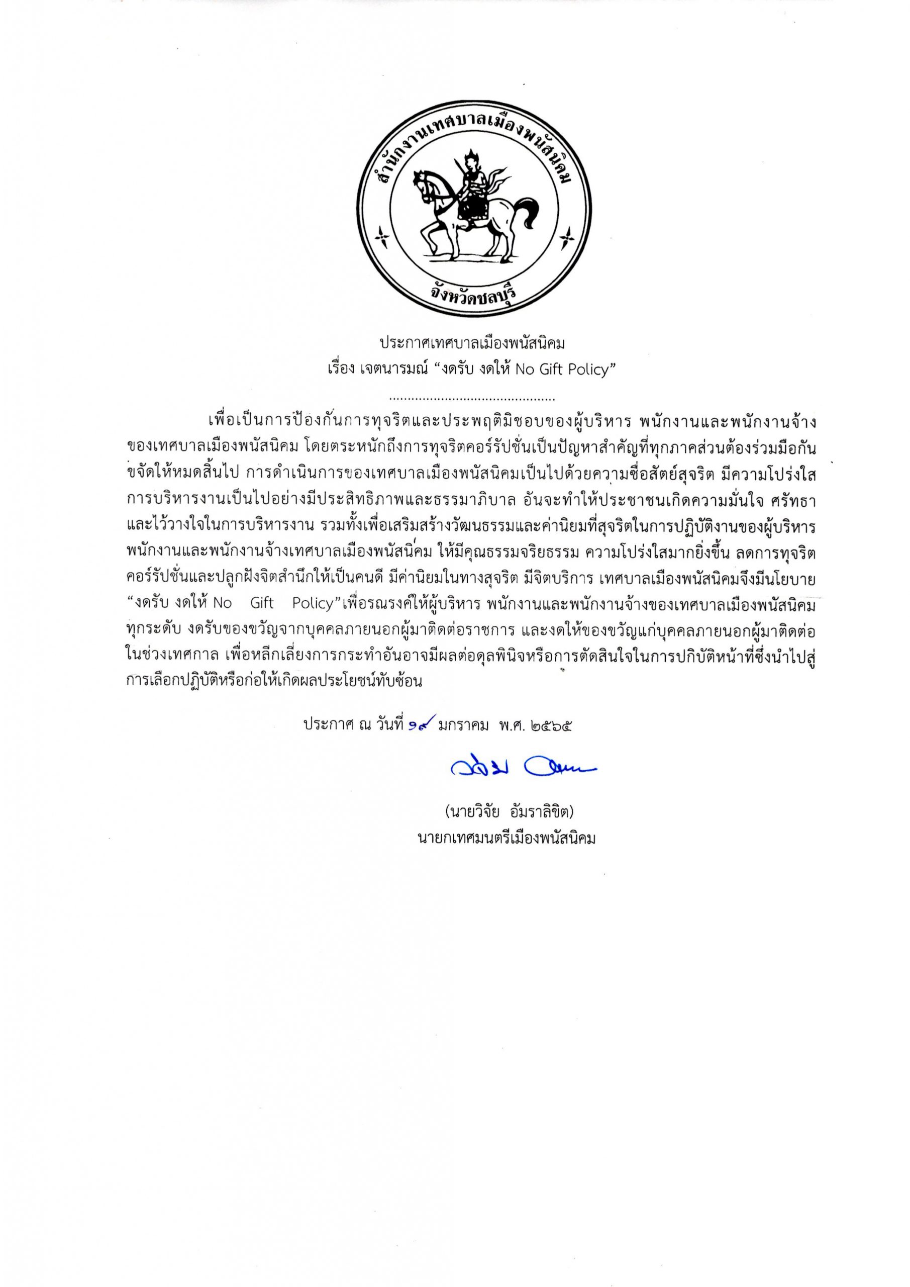 เรื่อง เจตนารมณ์ “งดรับ งดให้ No Gift Policy”