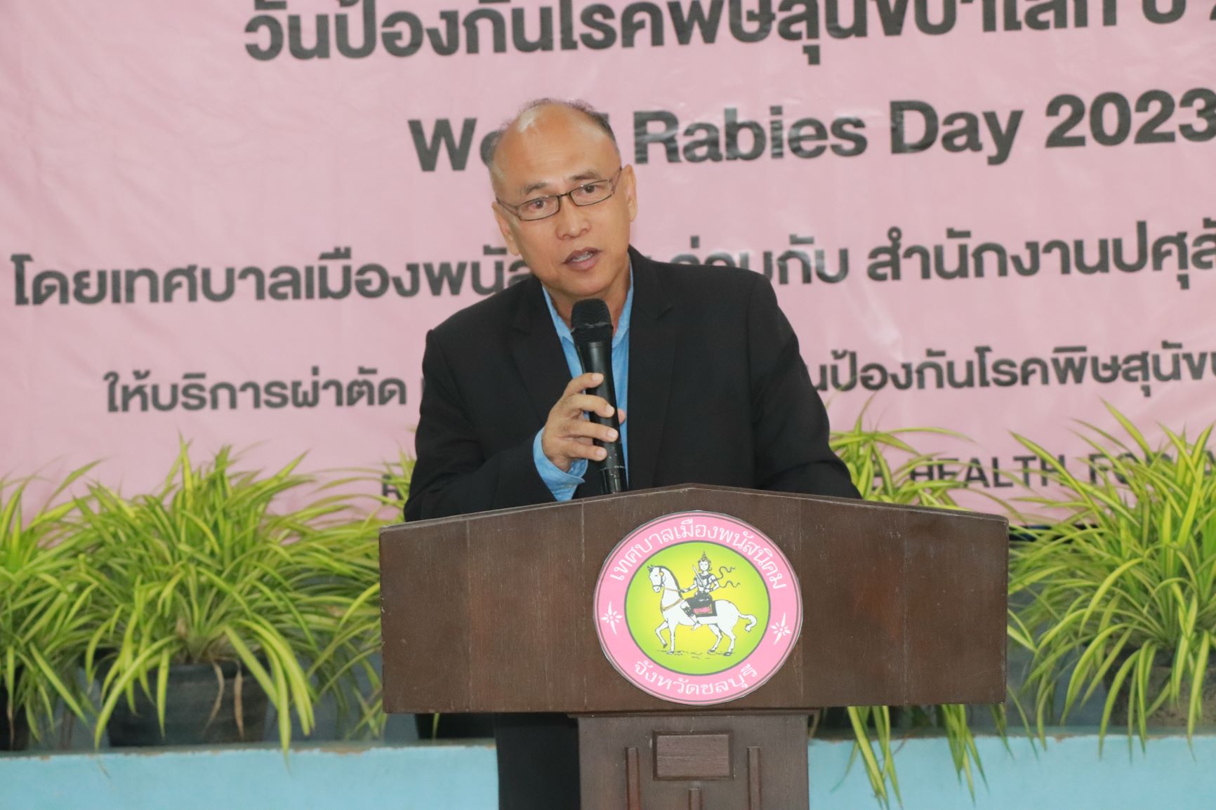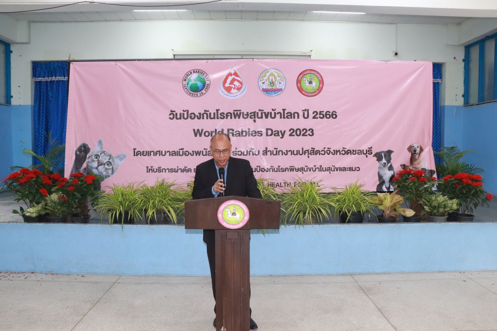 ในวันศุกร์ที่ 15 กันยายน 2566 เวลา 09.00 น. นายศุภฤกษ์ มูลผลา , นายปรีชา กาญจนบัตร รองนายกเทศมนตรี นางสาวเกตน์นิภา ไกรจะบก รองปลัดเทศบาล และหัวหน้าส่วนราชการ ให้การต้อนรับ บุคลากรทางการแพทย์ จากปศุสัตว์จังหวัดชลบุรี โดย นายชวนะ ทองเย็น ปศุสัตว์จังหวัดชลบุรี เป็นประธานเปิดโครงการวันป้องโรคพิษสุนัขบ้าโลก ปี พ.ศ. 2566 (world Rabies Day 2023) ภายใต้แผนยุทธศาสตร์การดำเนินโครงการสัตว์ปลอดโรค คนปลอดภัย จากโรคพิษสุนัขบ้า ตามปณิธานศาสตราจารย์ ดร.สมเด็จเจ้าฟ้าฯ กรมพระศรีสวางควัฒน วรขัตติยราชนารี   ณ โรงเรียนเทศบาล 3 วัดเกาะแก้วนครสวรรค์ อ.พนัสนิคม  จ.ชลบุรี