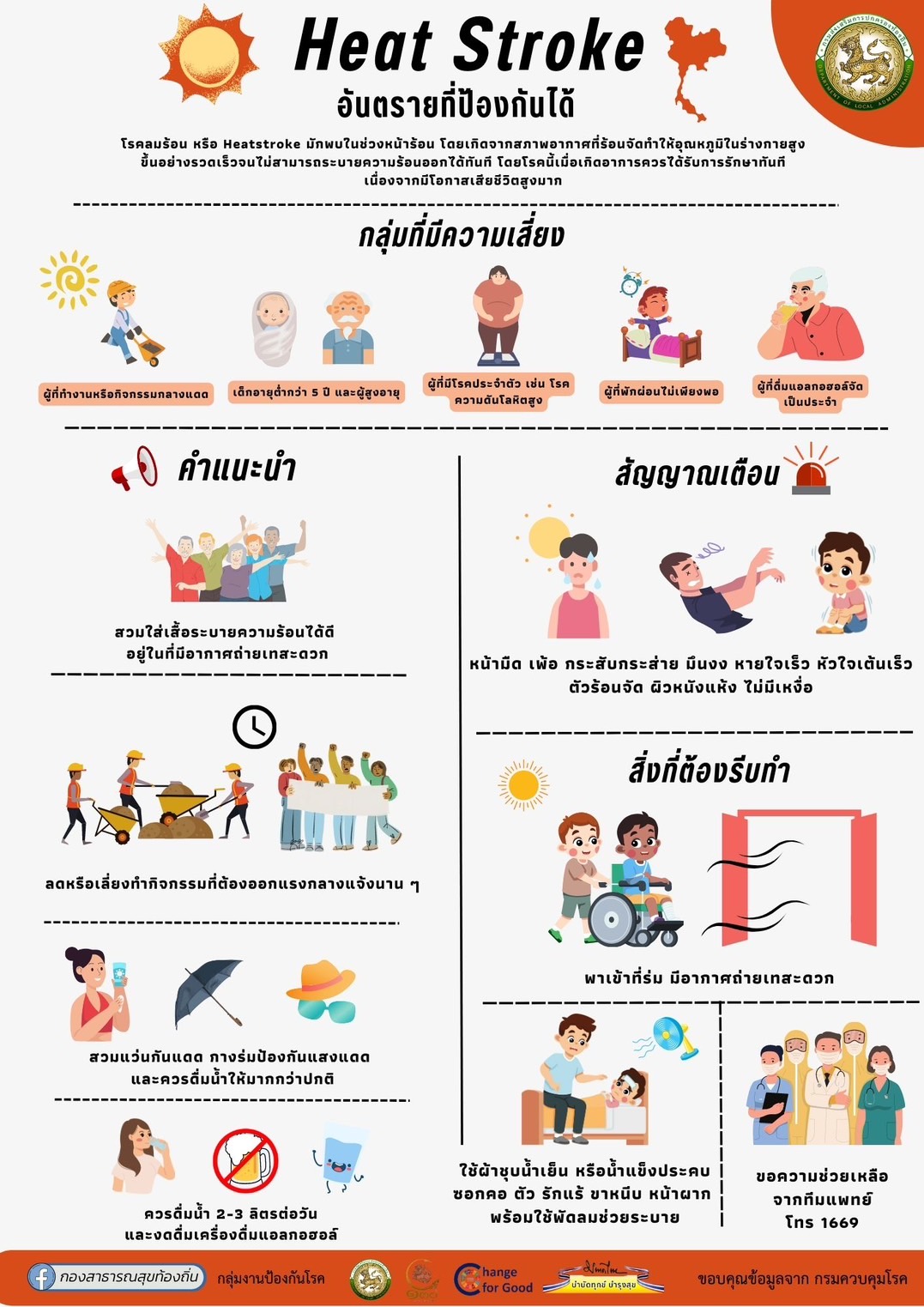 ดัชนีความร้อน มากกว่า 54 องศาเซลเซียส อันตรายมาก อาจเกิดภาวะลมแดด (Heat Stroke)